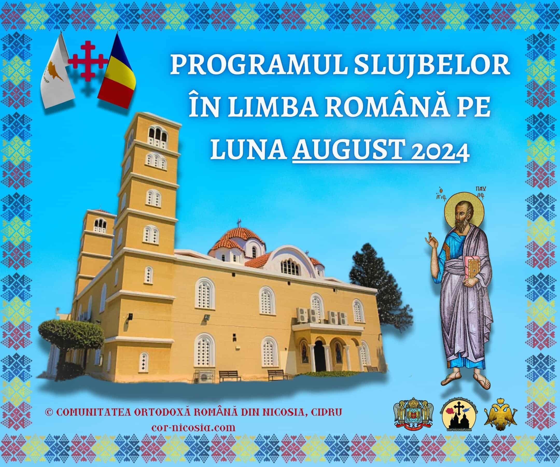 Duminică, 4 August, ora 10:00 – Sfânta Liturghie, Molifta postului şi Molifta pentru Sfânta Taină a Spovedaniei, la biserica „Sfântul Pavel”. Duminică, 11 August, ora