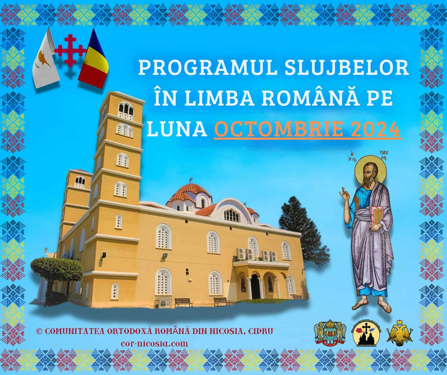 Duminică, 6 Octombrie , ora 10:00 – Sfânta Liturghie, la biserica „Sfântul Pavel”. Duminică, 13 Octombrie, ora 10:00 – Acatistul Sfintei Cuvioase Parascheva de la