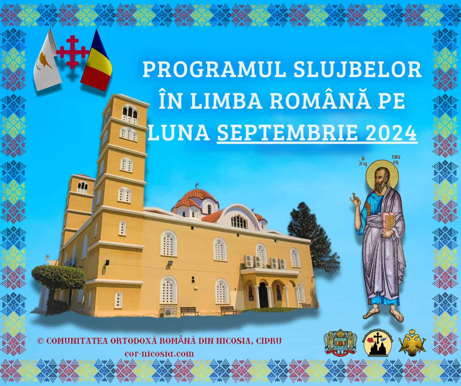 Duminică, 8 Septembrie, ora 10:00 – Sfânta Liturghie, la biserica „Sfântul Pavel”. Duminică, 15 Septembrie, ora 10:00 – Acatistul Sfintei Cruci, la biserica „Sfântul Pavel”.