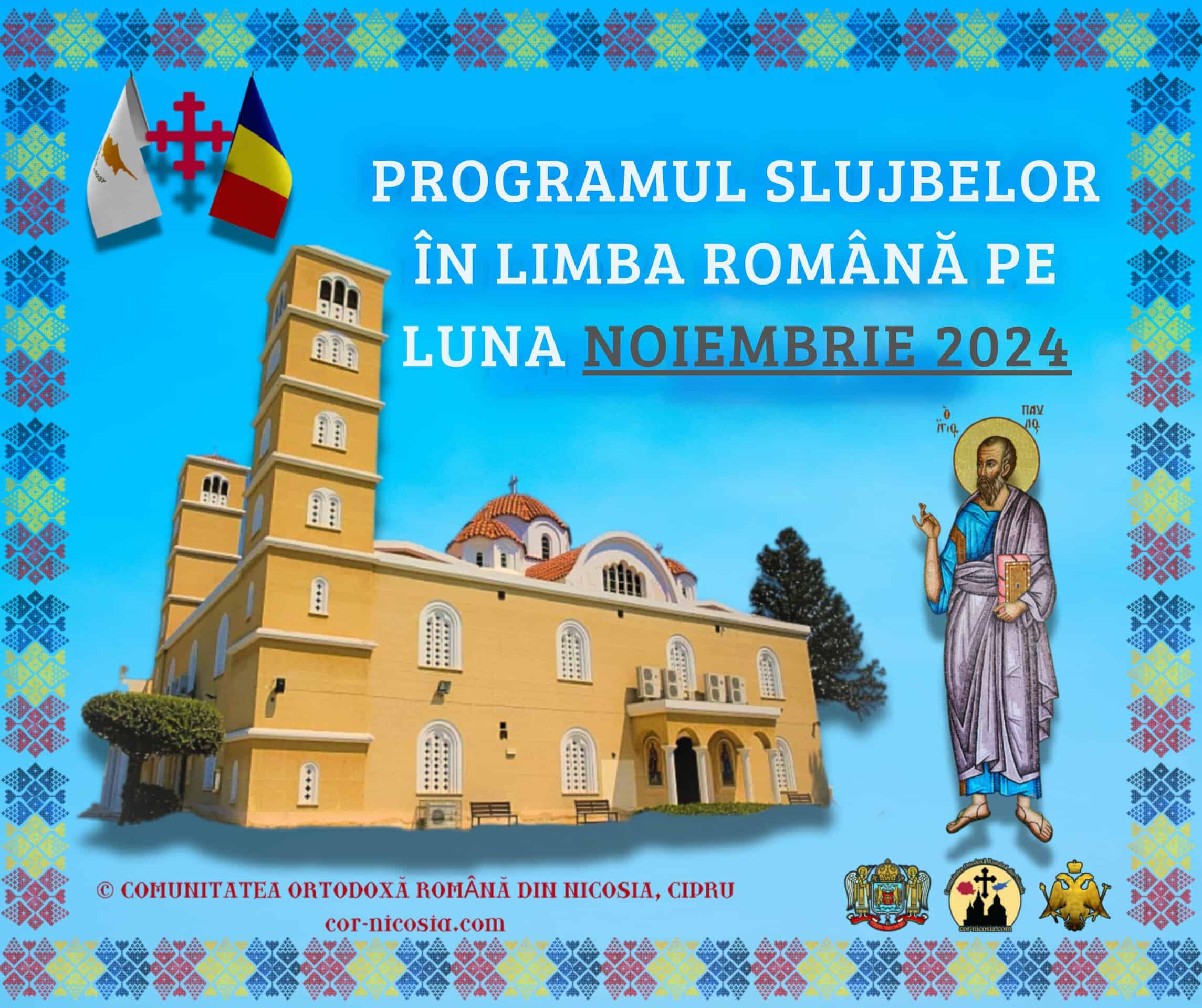 Duminică, 1 Decembrie, ora 10:00 – Acatistul Sfântului Apostol Andrei, cel întâi chemat și Tedeum pentru Ziua Națională a României, la biserica „Sfântul Pavel”. Duminică,